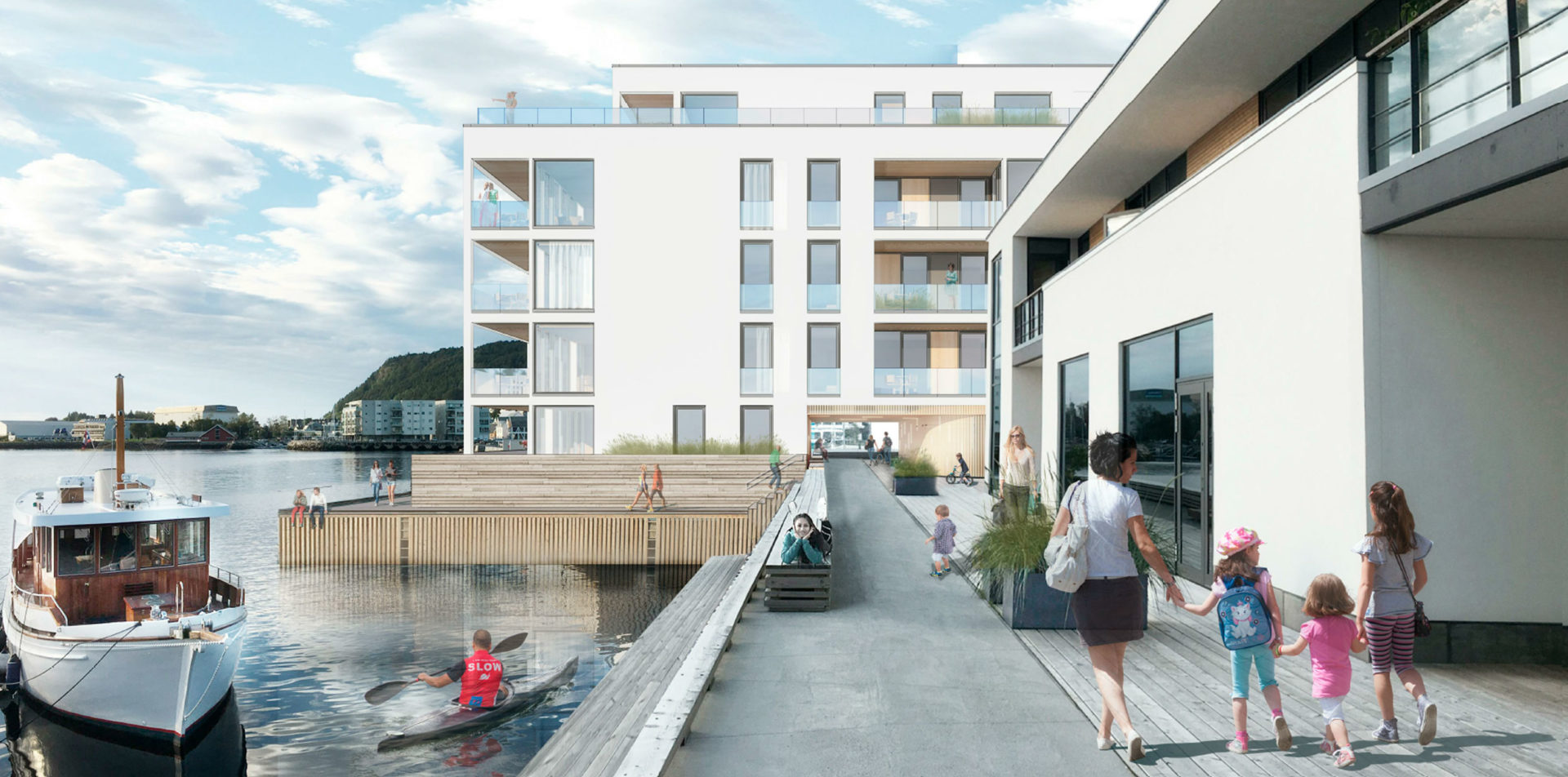 På Sjøsida finn du små og store leiligheter i eit levande miljø, med gangavstand til det sentrum i Ulsteinvik har å by på av restaurantar, butikkar, badeland og kulturliv.